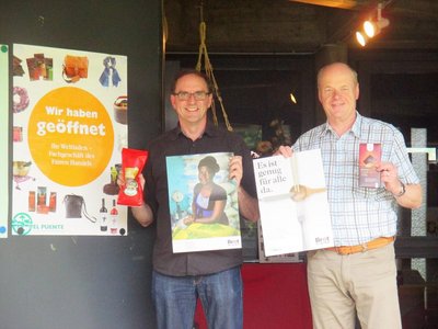 Mit unserem kleinen Weltladen in der Heiligen Dreifaltigkeit wollen wir helfen, die Welt ein klein wenig besser zu machen. Wir kooperieren eng mit "Brot für die Welt". Zugleich informieren wir mit Infomaterial und -veranstaltungen über die komplexen global-wirtschaftlichen Zusammenhänge und ihre sozialen Auswirkungen. Entsprechend werden daher auch immer Konfirmandinnen und Konfirmanden eingebunden. Helfen auch Sie durch Ihr Engagement...!